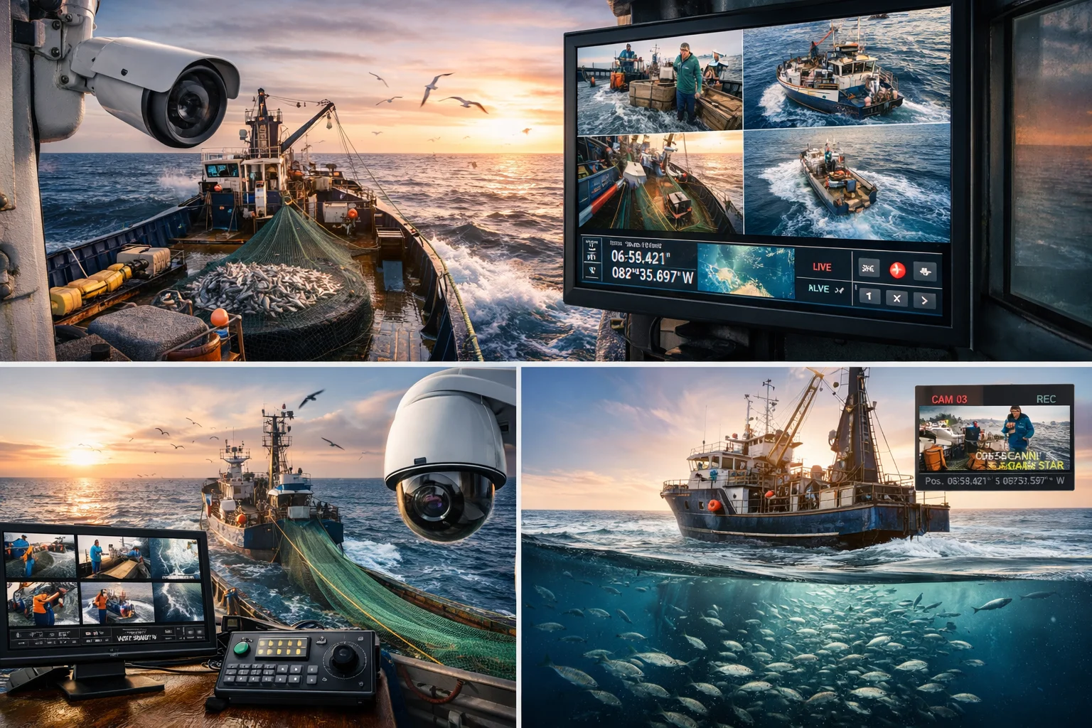 Soluciones de vigilancia en tiempo real con análisis automatizado mediante inteligencia artificial, para garantizar transparencia y seguridad en operaciones pesqueras. Suministro de equipos electrónicos especializados Distribución de cámaras, sensores y dispositivos de monitoreo certificados para el sector pesquero.
